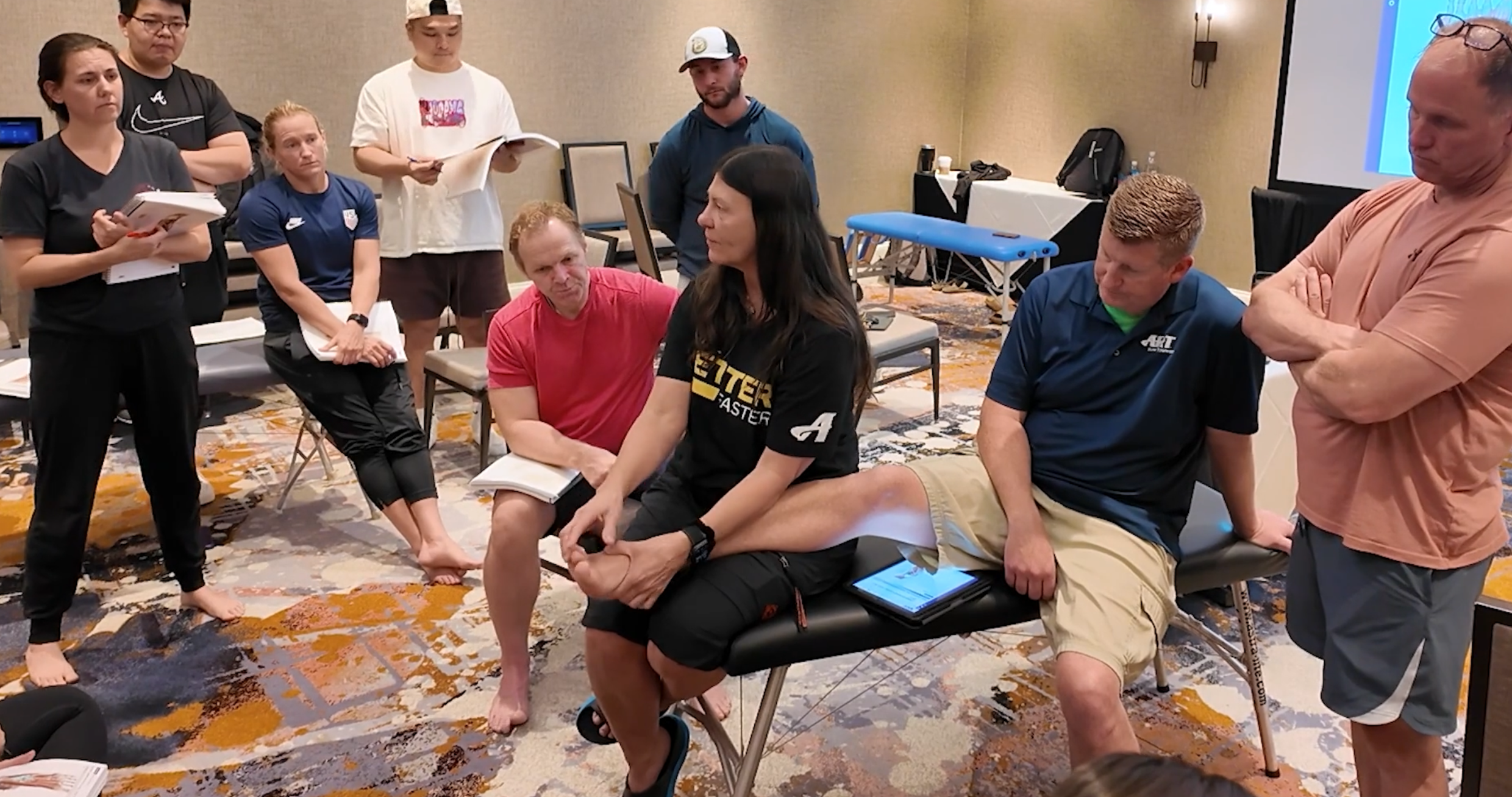 ART provides a hybrid learning model with online modules and in-person training. Attendees are expected to complete online preparatory materials consisting of a review of gross anatomy, explanations of the ART Diagnostic Algorithm, treatment methodology, protocol instructions, and a pre-credentialing exam. During the in-person portion of the seminar, attendees work alongside instructors and other attendees to practice palpation and treatment protocols. After completing the online modules and 15 hours of in-person training, attendees will demonstrate their skills through a practical exam to determine if they meet the minimum requirements to use ART treatment in a clinical setting.